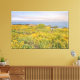 Um campo vibrante de flores silvestres amarelas se estende em direção ao horizonte, criando um impressionante contraste contra o oceano azul e o céu nublado na Península de Monterey, Califórnia. As flores estão em flor de cheio, suas pétalas amarelas brilhantes criando um mar de cor. O litoral é visível ao fundo, com recortes rochosos e as leves ondas do oceano.