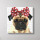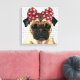 Impressão Em Tela Pug com Arco vermelho na cabeça