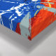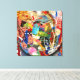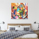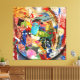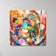 Uma mistura vibrante e caótica de cores, formas e linhas forma uma composição abstrato. O quadro circular no centro parece conter a densa e enérgica explosão de matizes, dando-lhe uma sensação de profundidade e movimento.