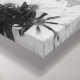 Uma vida estática de quatro garrafas cheias de flores brancas e apresentadas em preto e branco. Fotografia e trabalho de arte digital por Sandra Foster © Sandra Foster Designs - Zazzle.