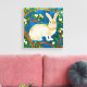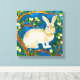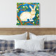 Canvas em ilustração de um coelho selvagem, cercado por ramos floridos, sobre fundo azul-denim escuro