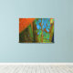 O trabalho de arte colorido e abstrato nesta Impressão de Tela foi criado de uma fotografia original de close-up por ZoeSPEAK de gotas de chuva em frentes de palma. Os chás do meio-dia viraram sol à tarde e céu azul, e as frentes e gotas de chuva responderam em cores tropicais de verde limão, azul-aqua e laranja.