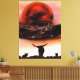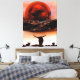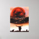 Rustic Longhorn Ranch Canvas Impresso pelo artista Jason Girard em cor de castanho escuro a laranja enferrujado retrata um rancho de gado mais longo com cerca e cenário de lua feito para os entusiastas da arte rústica decor caseiro que pode viver em uma fazenda ou rancho e ter gado.