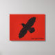 Uma simples silhueta preta de um Raven (Corvus corax) em uma imagem de fundo vermelha, de aparência de couro. A imagem raspada recebeu um ligeiro efeito "áspero" ou "vestido". Adicione seu próprio texto.
