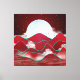 design de paisagem abstrato em vários tons de vermelho com um luar, colinas, árvores, nuvens e aves.