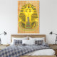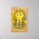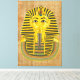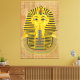 Máscara funerária do Rei Tutancâmon em um fundo de papiro.