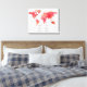Watercolor World Map Long Distance Relationship in Coral and Peach Canvas print com corações e conectores - eles podem ser movidos e posicionados onde for necessário (para conexões mais próximas reduzirem o tamanho do conector para fazê-lo funcionar) poema que diz "juntos para sempre, nunca separados, talvez em distância, mas nunca no coração"