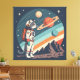 Impressão Em Tela Retro Cat Astronaut Cosmic Space Illustration
