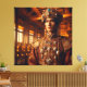 Uma figura nobre, carregada de roupa cerimonial opulente vermelha e dourada, está dentro de um palácio imperial brilhando com luz quente. O intricado bordado, enfeitado com jade, pérolas e medalhões de ouros, destaca seu status como símbolo de poder e tradição.