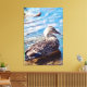 Foto de uma fêmea de pato Mallard parada na área rasa de um lago, com ondulações d'água se afastando dela em movimento circular. Copyright Kimberly J Tilley.