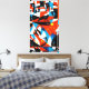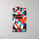 Uma canvas em negrito cheia de formas dinâmicas vermelha, preta, branca e azul, criando um cheio impressionante de contraste, energia e expressão moderna.