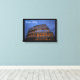 Uma fotografia marcante do colosso romano, que é um antigo marco em Roma, Itália. Um ângulo e uma perspectiva interessantes. Tiro à noite com os arcos iluminados e a laranja brilhando. O céu tem nuvens escuras e azuis.