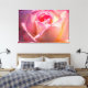 Uma fotografia de proximidade captura a delicada beleza de uma rosa rosa rosa-rosa. As pétalas são macias e velozes, com um gradiente de cor de um rosa profundo no centro a um rosa mais claro nas bordas. A rosa é iluminada pela luz solar, lançando um brilho quente em sua superfície. A imagem foca detalhes intrincados da estrutura do rosa, destacando as curvas delicadas e texturas das pétalas.