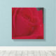 Rosa vermelha com gotas de orvalho apresentadas em formato quadrado em convas esticadas.