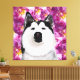 Impressão de arte maravilhosa de parede interior com um cão rouco e rosas rosa.
