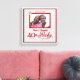 Ruby red é a cor que representa 40 anos de casamento e você pode criar o presente perfeito para o casal rubi quando você adiciona sua foto, nomes e data de aniversário a esta canvas de fotos vermelha e prateada. A fronteira, a arte-quadro e a arte-palavra são todas criadas digitalmente em um belo estilo falso de folha vermelha.