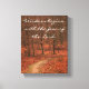 impressão de canvas com imagem da floresta no final do outono. Árvores negras e folhas vermelhas e laranja cobrir o chão e uma pequena faixa. O provérbio irlandês Sabedoria começa com o medo do Senhor em escritura branca. Personalizável.