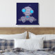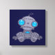Imagem vetorial de um robozinho fofo, mas triste, com olhos azuis sentados no chão.