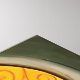 Distinctive abstract forms and vivid colors create a vibrant scene featuring a woman in a yellow dress, seated on a star-covered bed. A standing figure in red and swirling patterns add depth and motion to the background.