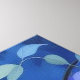 Ein zarter Ast mit üppig blühenden, pastellfarbenen Kirschblüten schwebt vor einem weichen, blauen Hintergrund. Die Blüten leuchten im Licht, umgeben von feinen Glanzpunkten – ein Symbol für Ruhe, Erneuerung und stille Schönheit des Frühlings.