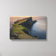 Uma legal paisagem marinha da costa da Escócia. Lindo e cênico terreno escocês. Colinas verdes e rochas. Um mar tranquilo calmo embaixo. Um ouro de pôr do sol a distância.