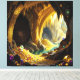 Tief verborgen in einer geheimnisvollen Höhle leuchten unzählige Goldmünzen und Schatztruhen im Licht der Sonnenstrahlen, die durch eine Öffnung in der Decke dringen. Eine Szene wie aus einem Märchen – reich an Magie, Abenteuer und uralten Geheimnissen.