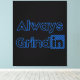 Esta arte de parede exibe as palavras "Always Grindin" em uma fonte Etna Sans Serif impressão com letra azul oca com "in" colocada sobre design de faixa quadrada. Nossas impressões são impressas com a resolução mais alta em papel de arquivamento de algodão-poli para um impressão resistente a perda de longa duração e medidas de 40,00 x 48,60". Este impressão vai fazer a adição perfeita para iluminar qualquer casa ou escritório.