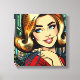 Adorável estilo cômico de arte pop do século médio retro vibrações nostálgicas trabalho de arte representando uma mulher na cidade segurando sacos de compras.