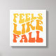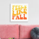 Este trabalho de arte ousado e vibrante com o tema de queda apresenta a frase "Feels Like Fall" exibida de forma destacada em uma fonte retrorinspirada e picada. O texto é arranjado em um layout dinâmico e lúdico que desenhar o olho e adiciona uma sensação de movimento ao design. A paleta de cores de gradiente quente transita de amarelo ouro para laranja profundo, capturando perfeitamente os ricos tons das folhas do outono. A simplicidade do design, aliada à sua tipografia nostálgica e cores marcantes, faz dele uma escolha perfeita para materiais sazonais de decoração, roupa ou promocional que celebram a chegada do outono. Esta trabalho de arte é ideal para evocar os sentimentos acolhedores e nostálgicos associados à estação do outono.