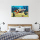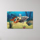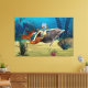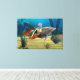 Dois amigos, uma bela sereia nadando com um golfinho num oceano de fantasia azul