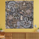 Ritual de Peyote, Ritual de Pássaro, Serpentes Xamânicos, marfim azul preto bege, decoração boho, virginia vivier, arte popular vagabundo, arte independente, arte popular mola.