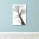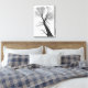 Uma silhueta de árvore escura e branca marcante capturada de baixo, mostrando sua forma elegante, ramificando contra um fundo branco limpo. Uma declaração ousada para decor minimalista.