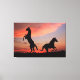 Apresentando um fôlego tendo em vista duas silhuetas Black Stallone.Com o sol laranja sobre elas, um cavalo está sobre suas pernas traseiras.esta é uma bela Impressão de pintura nesta Canvas
