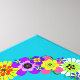 Um sinal de paz floral em tons de rosa, amarelo, laranja, roxo, verde, branco e preto.