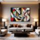 Uma dança vibrante de linhas, formas e cores entrelaçadas em perfeita harmonia. Essa abstrato revela movimento e profundidade, convidando o olho a explorar cada detalhe oculto em sua complexidade geométrica.
