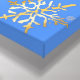 Flocos de neve Dourados e prateados caindo de um céu azul brilhante.