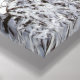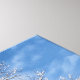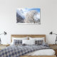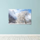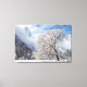 Uma paisagem coberta de neve com um grande carvalho ramificado em primeiro plano. A árvore é fortemente carregada de neve, seus ramos chegando em direção ao espectador. Ao fundo, uma cordilheira sobe, envolta em neblina e nuvens. O céu é um azul brilhante, com nuvens brancas sábias espalhadas por ele. A cena é pacífica e serena, com senso de tranquilidade e solidão.