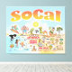 A arte brilhante e colorida oferece uma visão espetacular do sul da Califórnia - personagens malucos na praia e no deserto da SoCal mostrando Los Angeles, Orange County, San Diego, Papais noeis Barbara, Riverside, Palm Primaveras, El Centro, Anza Borrego e Joshua Tree parques, bem como das cidades fronteiriças de Tijuana, Tecate e Mexicali. Esta cena encantadora tem tudo - um surfista pendura dez enquanto uma baleia assassina salta da água, animais de zoológico cumprimentam os turistas, um companheiro muscular flex para impressionar enquanto um T-Rex lança um desafio e um tanque se move para a posição e muito mais...