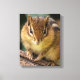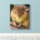 Um bonitinho esquilo olha com atenção para a câmera de um galho de árvore caído.