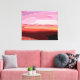 Um design de arte abstrato do pôr do sol em cores rosa, lilás, preta, vermelha e pêssego.
