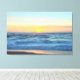 Um pôr do sol de tirar o fôlego sobre um vasto oceano, capturado numa longa fotografia de exposição. O céu está em chamas com tons vibrantes de laranja, rosa e amarelo, enquanto o sol cai abaixo do horizonte, lançando um brilho quente sobre a água. As ondas, embaçadas pela longa exposição, criam senso de movimento e tranquilidade. A praia arenosa no primeiro plano adiciona um toque de calor e textura à cena.