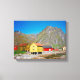 Cena costeira com montanhas e casas coloridas de madeira em Svolvaer, Ilhas Lofoten, Noruega