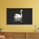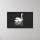 Uma foto de um cisne branco deslizando sobre a água tranquila escura. Tirada no Lago Roath Park, Cardiff, País de Gales.
