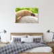 Uma fotografia de proximidade captura um cisne mudo que repousa a cabeça sobre o corpo, criando uma forma macia e arredondada. O fundo é um verde desfocado, provavelmente representando um ambiente de prados.