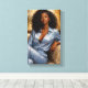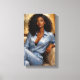 Cette toile met en évidence une femme afro-américaine d’une élégance saisissante, vêtue d’un ensemble bleu ciel qui sublime sa prestance naturelle et révèle toute la profondeur de sa beauté. Plongée dans une atmosphère apaisante, elle évolue dans une sphère de paix où douceur, sérénité et harmonie se rencontrent pour créer une composition visuelle captivante.