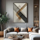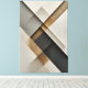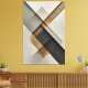 Abstract composition with geometric shapes in neutral and gold tones creating depth and balance. The intersection of planes with different textures evokes an elegant architectural structure. Perfect for environments that value minimalism and contemporary sophistication. Each angle reveals new perspectives of beauty.