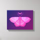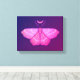 Arte de canvas de mariposas brutas em roxo e rosa com padrão mágico e comovente de mariposa amarela na noite com meia lua e estrelas sobre fundo roxo escuro.