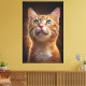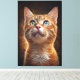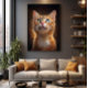 A hypnotic portrait of an orange cat with stunning eyes revealing a universe of dreams. With a magical background and golden particles, this digital art brings an ethereal and charming atmosphere. Perfect for those seeking mystery, cuteness, and sophistication in decor.