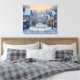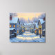 A representation on canvas in the impressionist pictorial style of a large village in winter time.