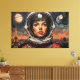 This digital artwork by Otis Porritt presents a striking close-up of an astronaut helmet. Her face, rendered with expressive, painterly strokes in warm skin tones and deep blues for her eyes, gazes upwards with a sense of wonder. The helmet's visor reflects a vivid blue sky, mirroring the expansive, brushstroke-textured sky above a desolate, sandy landscape. The impasto-like technique, characteristic of digital art mimicking traditional painting, gives the piece a dynamic and tactile quality, emphasizing the contrast between the detailed figure and the vast, unknown environment.
